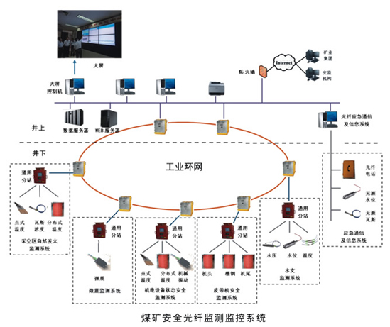 煤礦安全光纖監測監控系統,對災害隱患有關數據的實時監測監控是防治此類安全事故發生的有效途徑。本系統充分利用光纖傳感技術的優勢,將光纖傳感器用于對瓦斯動態變化、微震、溫度、頂板壓力,火災、水害等綜合信息進行多點實時監測,形成了新一代的煤礦安全光纖監測監控系統,將有效提高煤礦災害預測預報的準確性和前瞻性,對減少特大型煤礦安全事故、減少生命傷亡和財產損失具有革命性的意義。