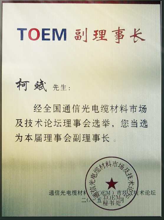 董事長柯斌推選為全國通信光電纜材料市場及技術論壇理事會副理事長