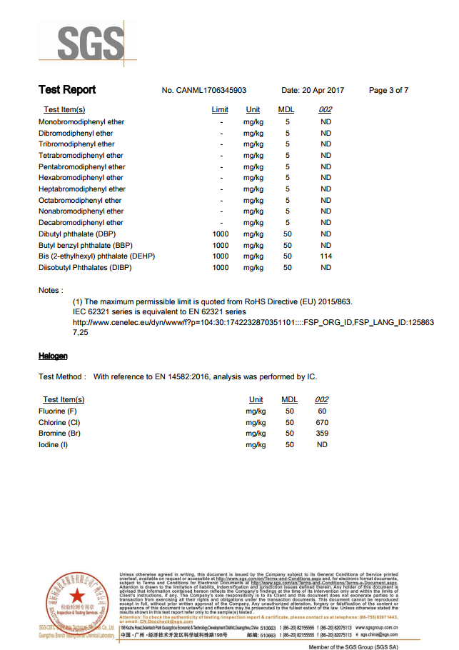 上一篇:17年聚乙烯護套料RoHS和鹵素檢測報告