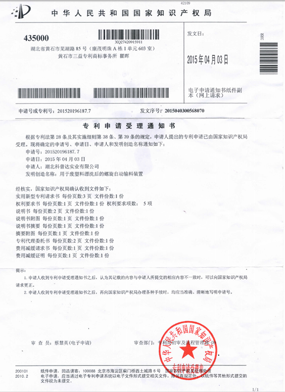 科普達(dá)以人為本,塑造品牌,創(chuàng)新發(fā)展,榮獲全省國稅百佳納稅人、中國循環(huán)經(jīng)濟科學(xué)技術(shù)三等獎、湖北省著名商標(biāo)、中國馳名商標(biāo)等多項榮譽。公司已獲9件專利授權(quán),擁有多項自主知識產(chǎn)權(quán)。