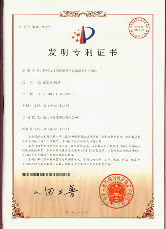 科普達(dá)以人為本,塑造品牌,創(chuàng)新發(fā)展,榮獲全省國稅百佳納稅人、中國循環(huán)經(jīng)濟(jì)科學(xué)技術(shù)三等獎(jiǎng)、湖北省著名商標(biāo)、中國馳名商標(biāo)等多項(xiàng)榮譽(yù)。公司已獲9件專利授權(quán),擁有多項(xiàng)自主知識(shí)產(chǎn)權(quán)。